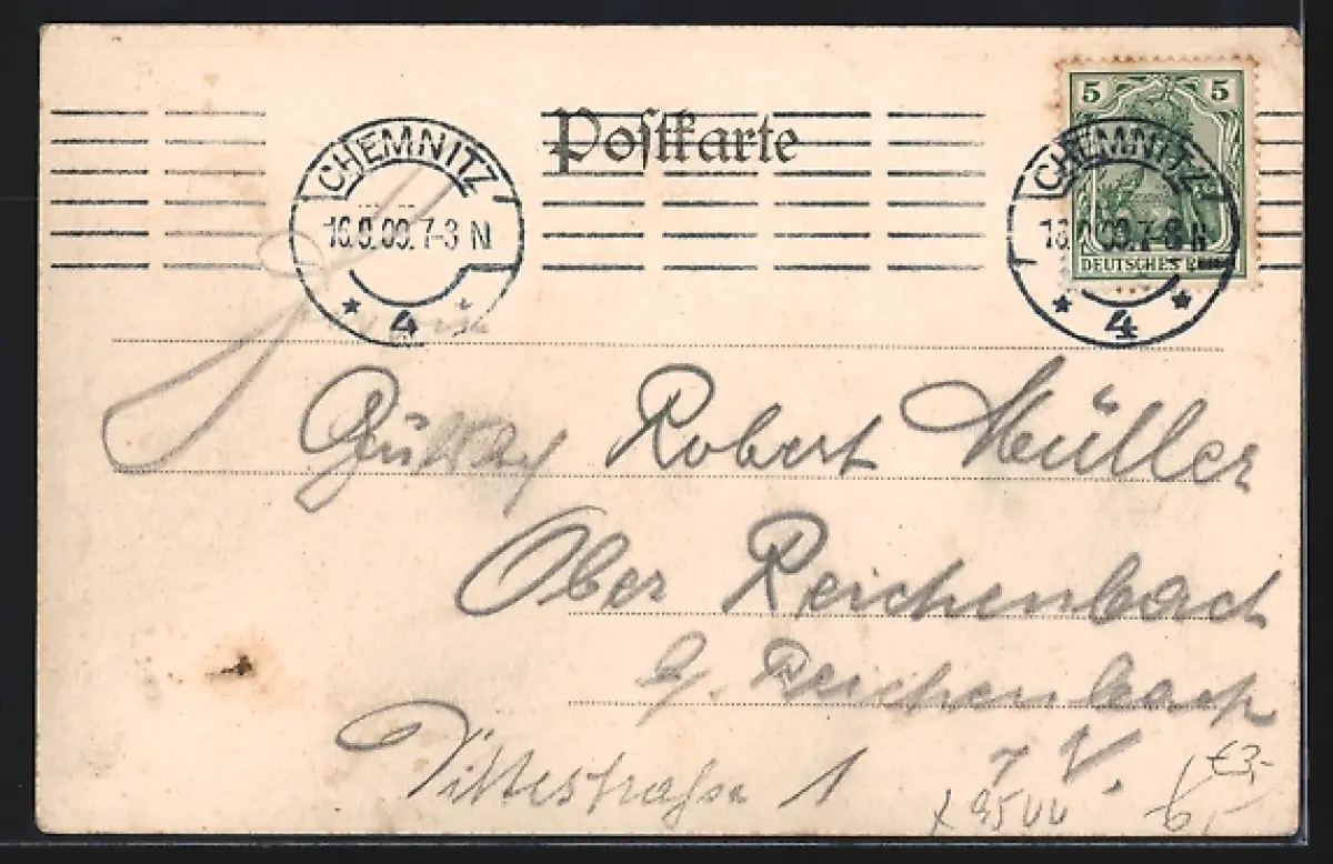 alte Ansichtskarte, gelaufen 1900, Eckknick oben links, guter Zustand