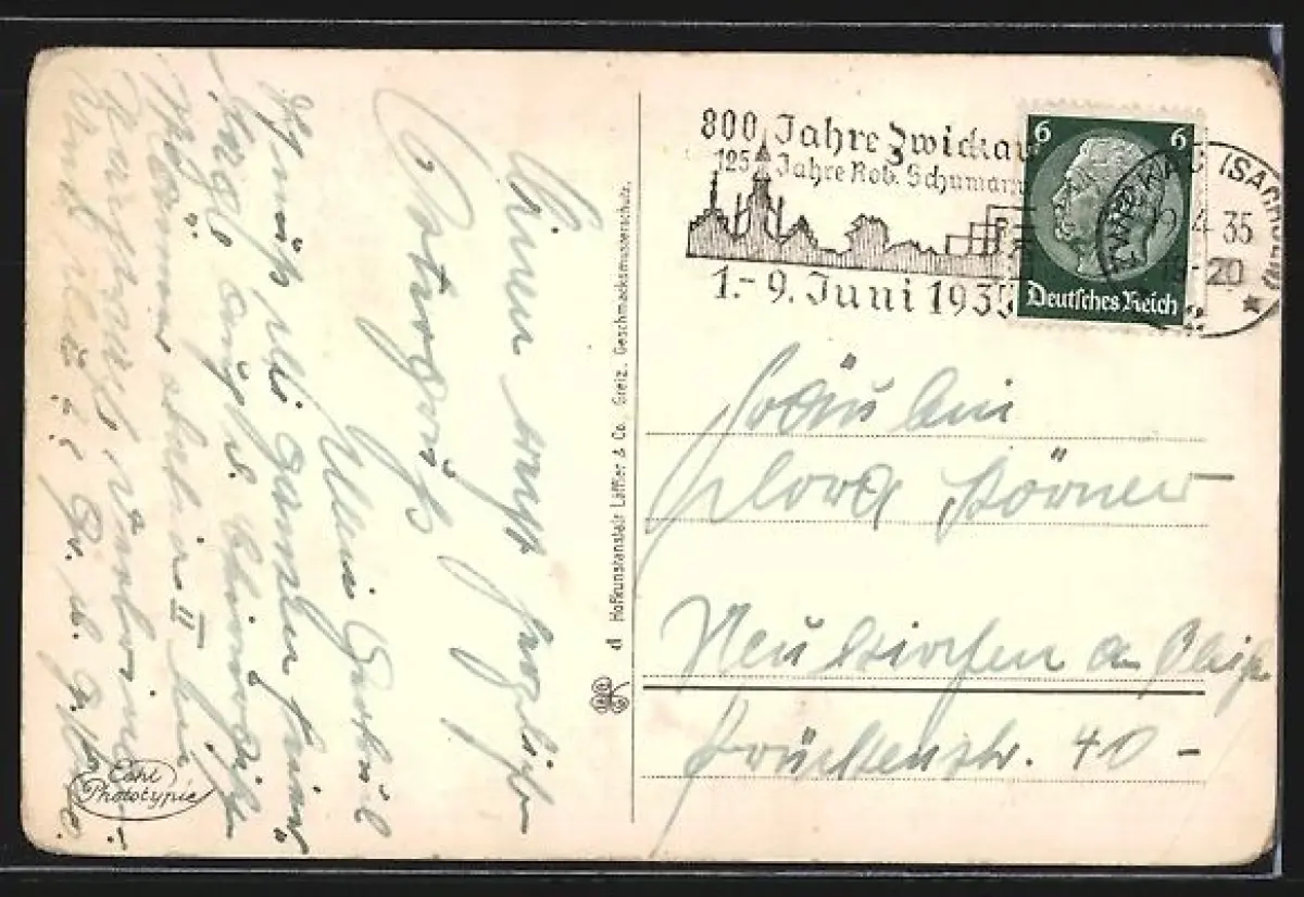 gelaufen 1935, Eckknick unten li., Ecken bestoßen, guter Zustand