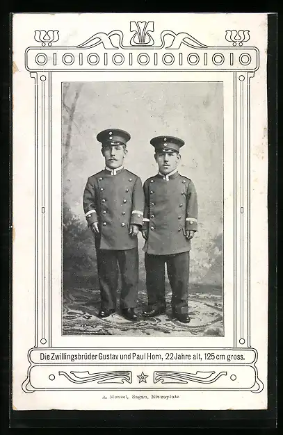 AK Zwillingsbrüder Gustav und Paul Horn in Uniform, Liliputaner