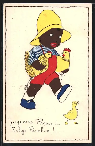 AK afrikanischer Junge trägt zwei Hühner unterm Arm, Osterküken
