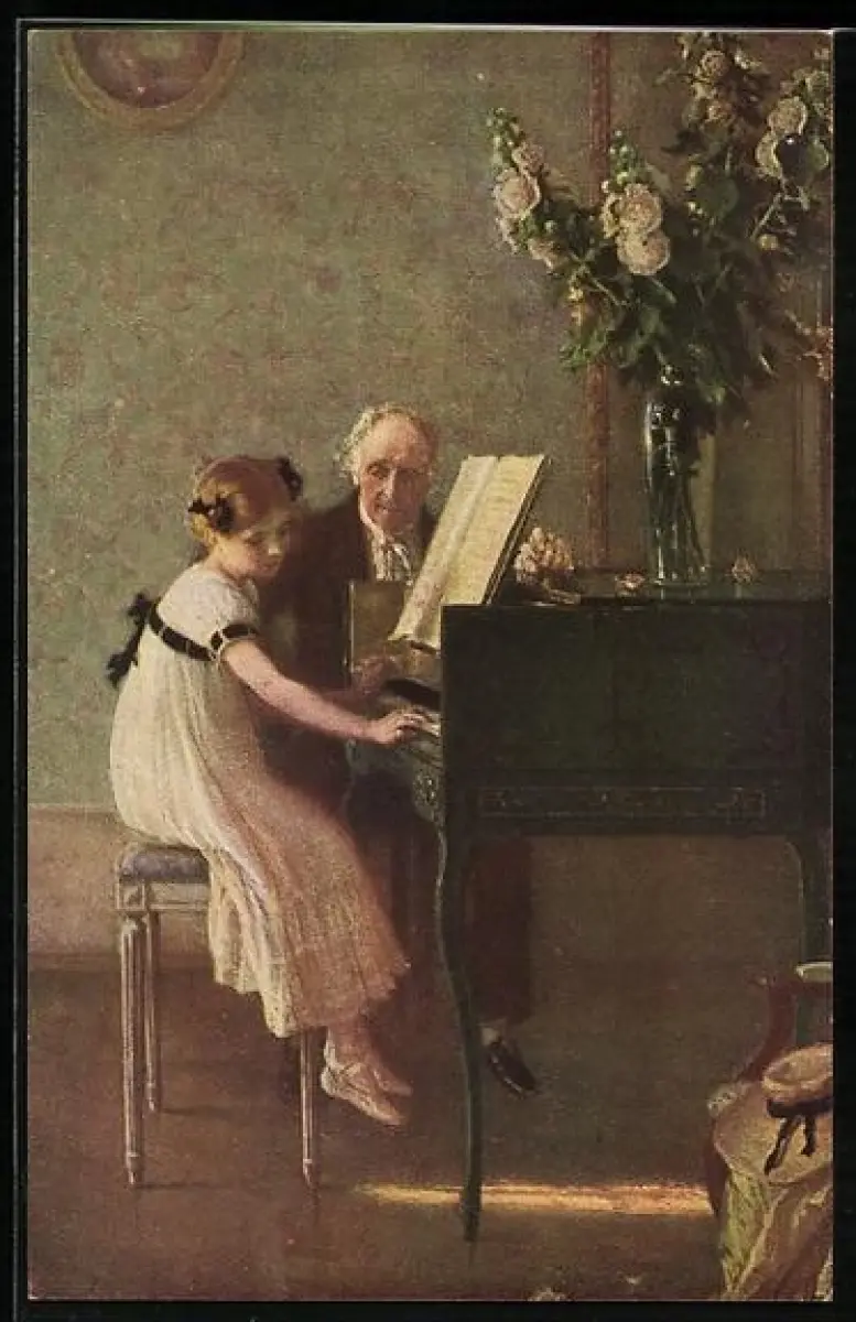AK alter Mann sitzt mit jungem Mädchen am Klavier