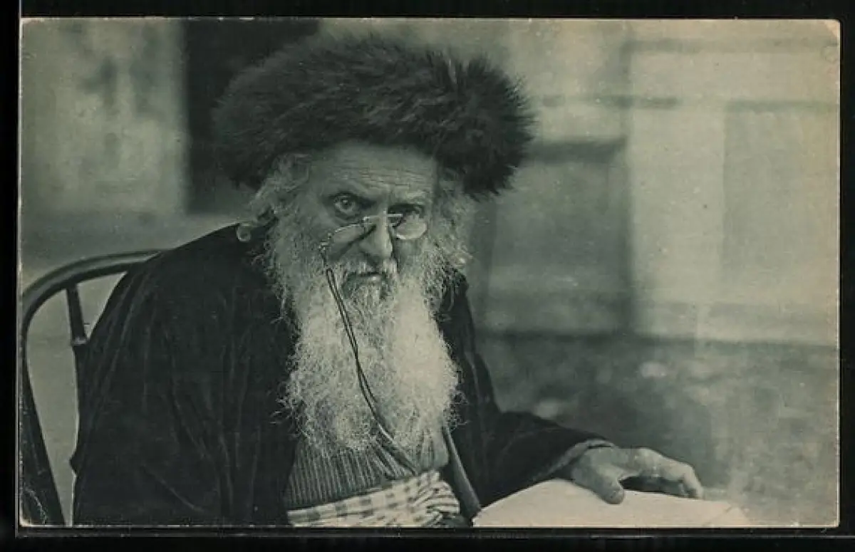 AK alter jüdischer Mann mit Pelzhut und Kneifer liest in einem Buch
