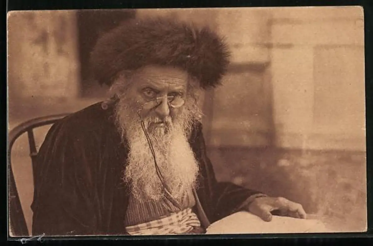 AK alter jüdischer Mann mit Pelzhut und Kneifer liest in einem Buch