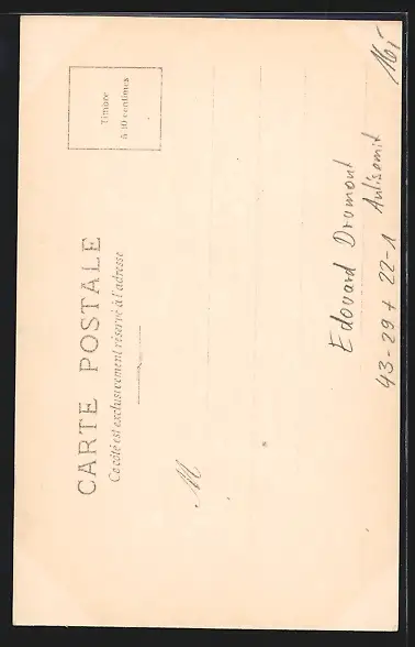 Personenbezogene Daten auf der Rückseite der Karte wurden durch blauen Textmarker unkenntlich gemacht. Die blauen Stellen sind auf die Vorderseite durchgeweicht und wirken sich negativ auf das Postkartenfoto aus