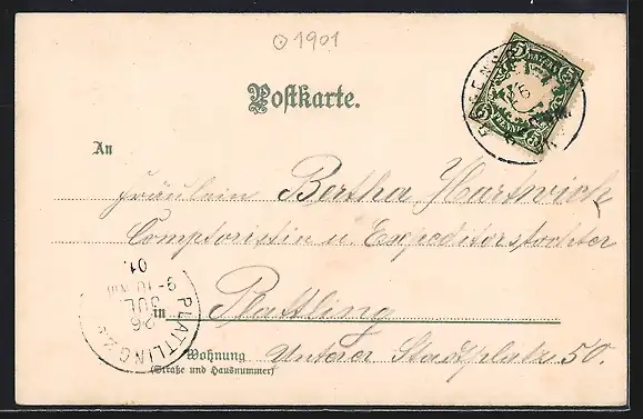 alte Ansichtskarte, gelaufen 1901, guter Zustand