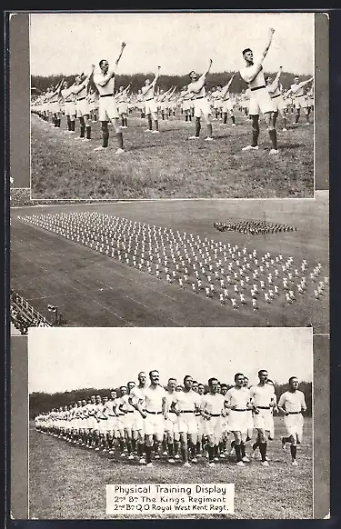 AK britische Soldaten in drei Bildern-Physical Training Display, the Kings Regiment, Royal West Kent Regiment