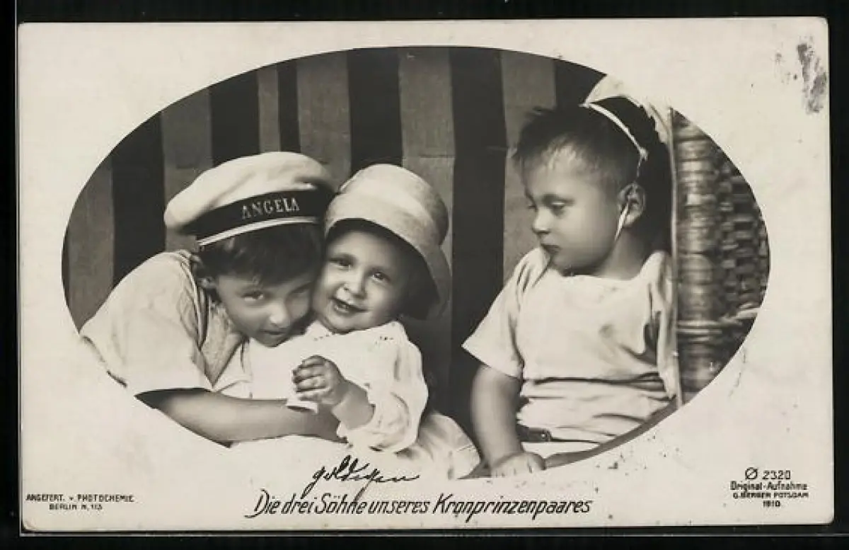 AK die Drei Söhne des Kronprinzenpaares, Mützenband Angela