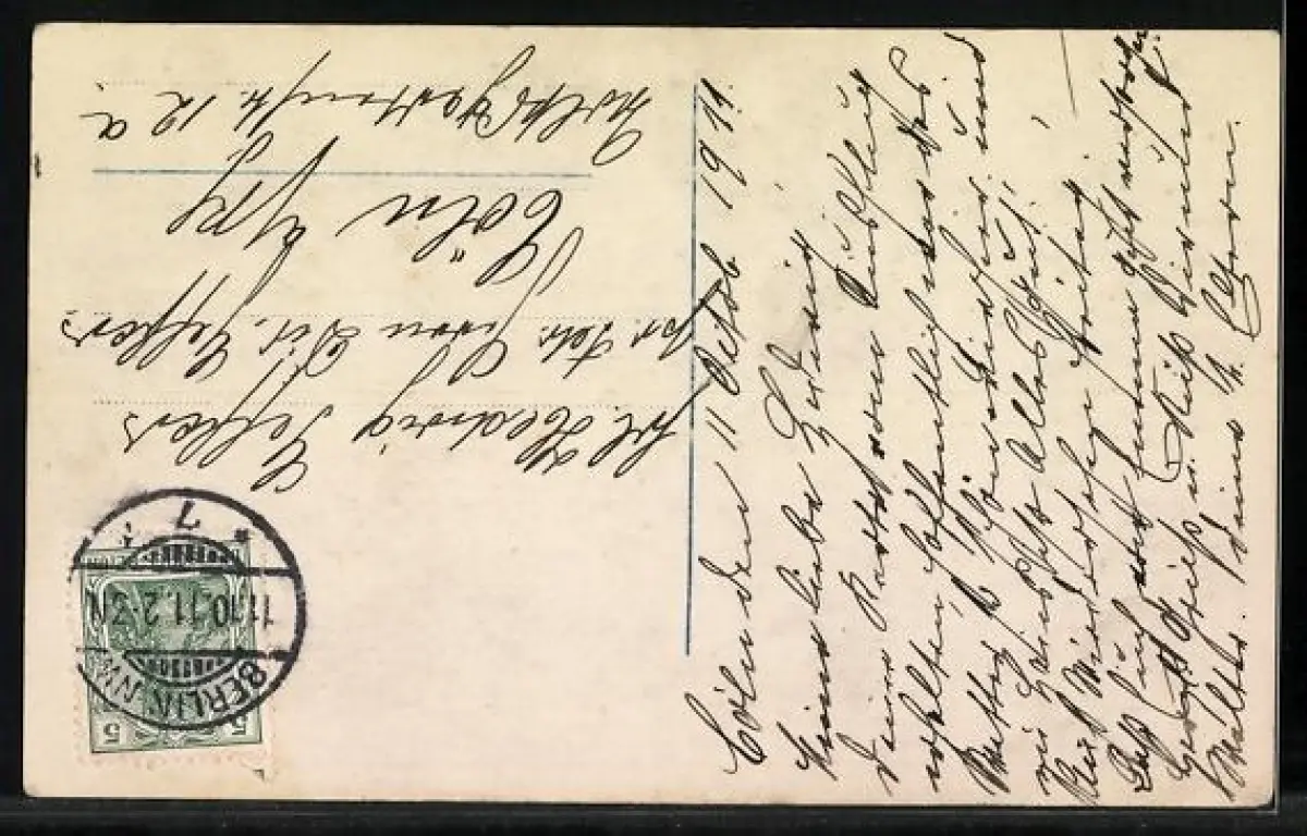 alte Ansichtskarte, gelaufen 1911, Stempelspur, guter Zustand