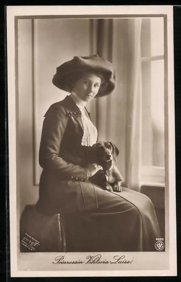 AK die junge Victoria Louise Herzogin von Braunschweig mit ihrem Dackel