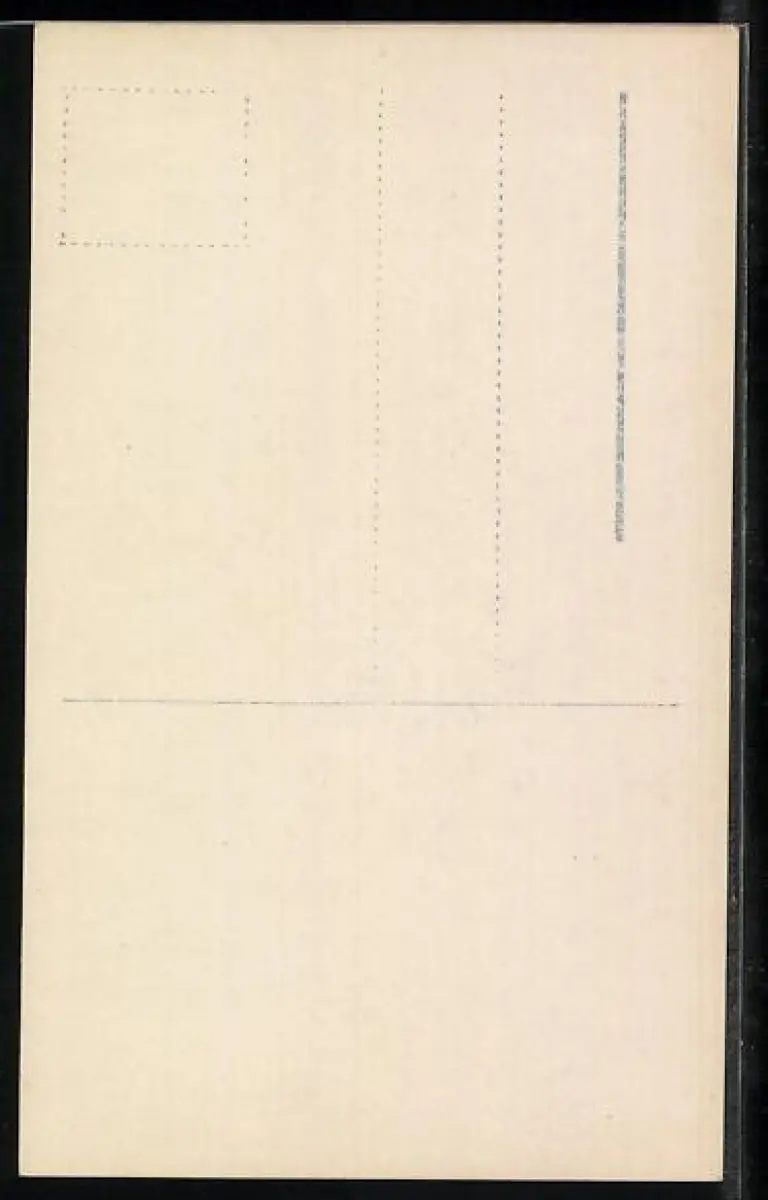 Personenbezogene Daten auf der Rückseite der Karte wurden durch blauen Textmarker unkenntlich gemacht. Die blauen Stellen sind auf die Vorderseite durchgeweicht und wirken sich negativ auf das Postkartenfoto aus