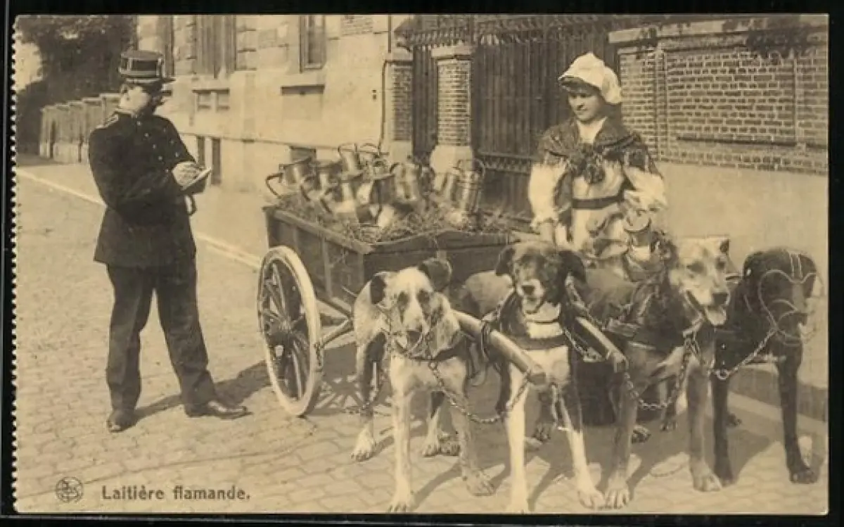 AK ein Hundekarren mit Milchkannen bekommt einen Strafzettel