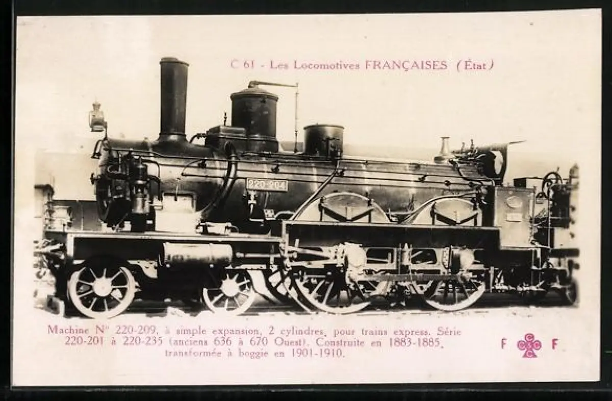 AK französische Eisenbahn, Machine No. 220-209, à simple expansion, 2 cylindres, pour trains express