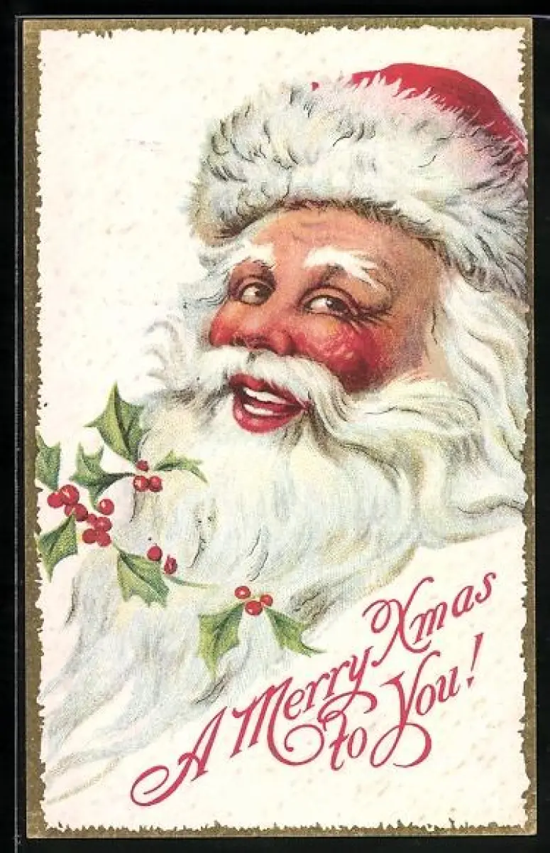 AK freundlicher Weihnachtsmann mit Beerenzweigen