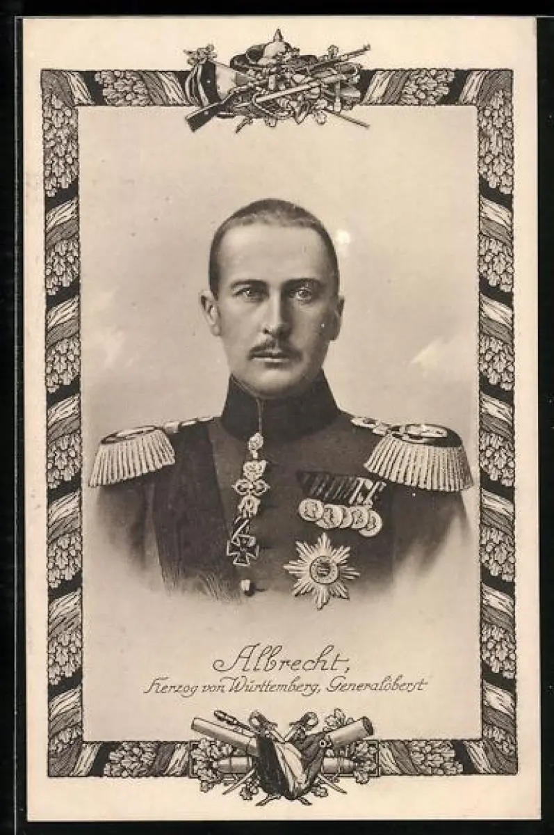 AK generaloberst und Herzog Albrecht von Württemberg in Uniform, mit Waffen, Blättern und Bändern verzierter Rahmen