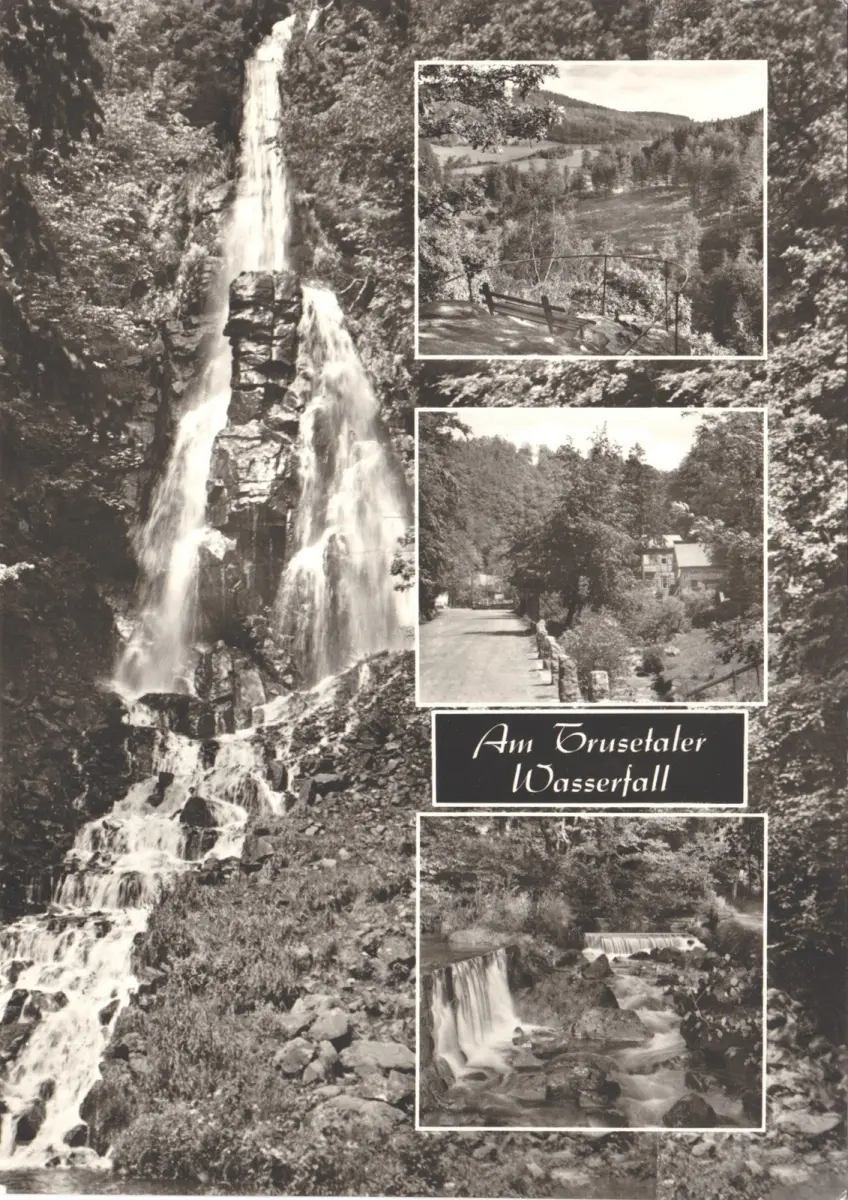 Ansichtskarte im Format 14,5 x 20,8 cm Trusetal Am Trusetaler Wasserfall, 4 Abb., gestaltet Erhaltung I-II, minimal bestoßene Ecken ungelaufen Druckvermerk: 1972 Herstellungsland: DDR Verlag: Auslese-Bild-Verlag, 62 Bad Salzungen Der