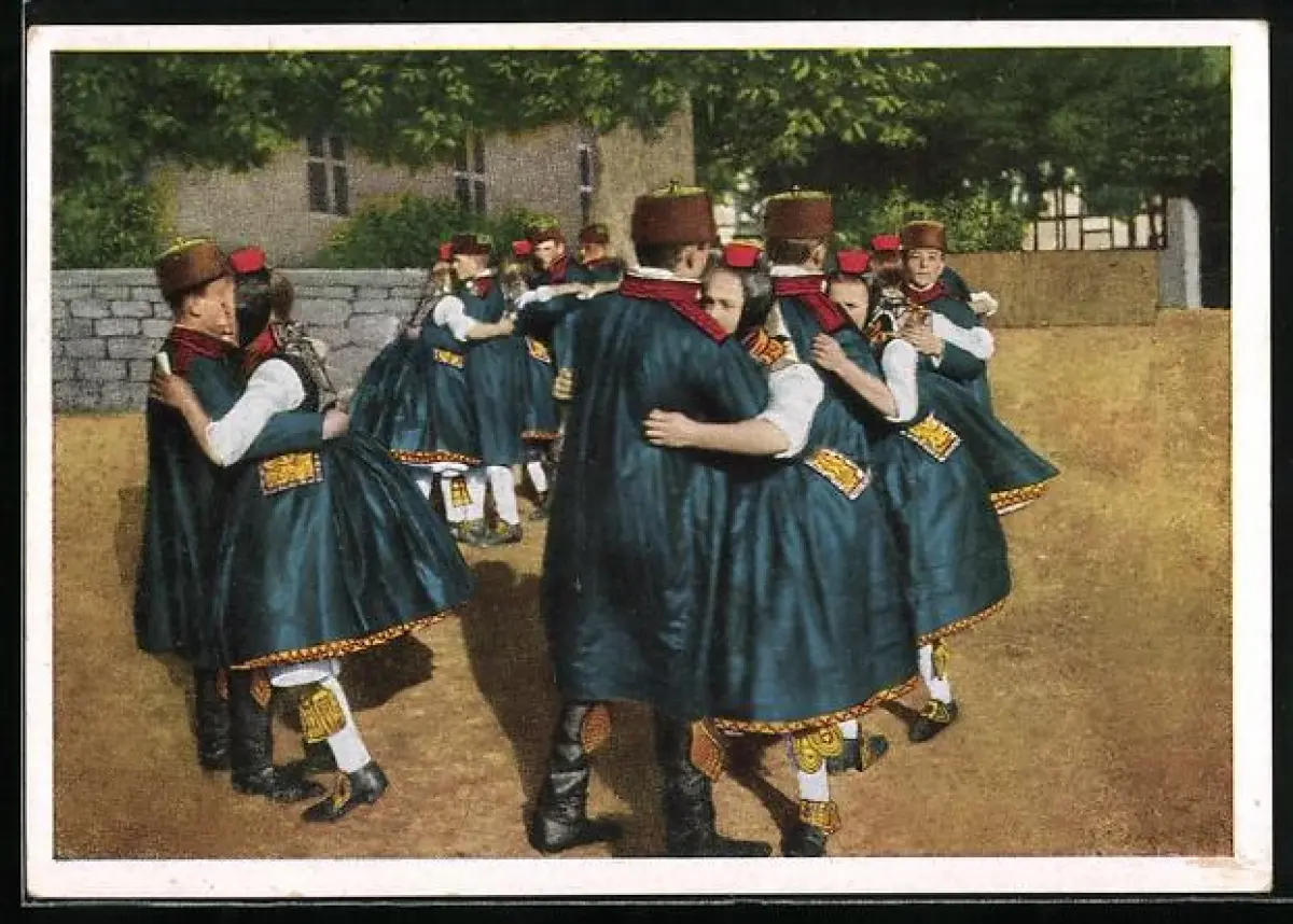 AK junge Paare in hessischen Trachten beim Schwälmer Tanz