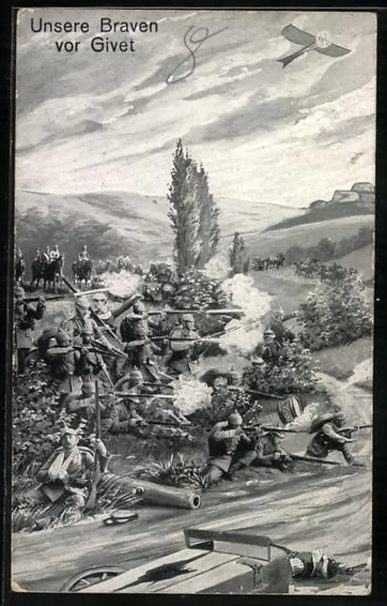 AK kämpfende Soldaten an der Front, Unsere Braven vor Givet