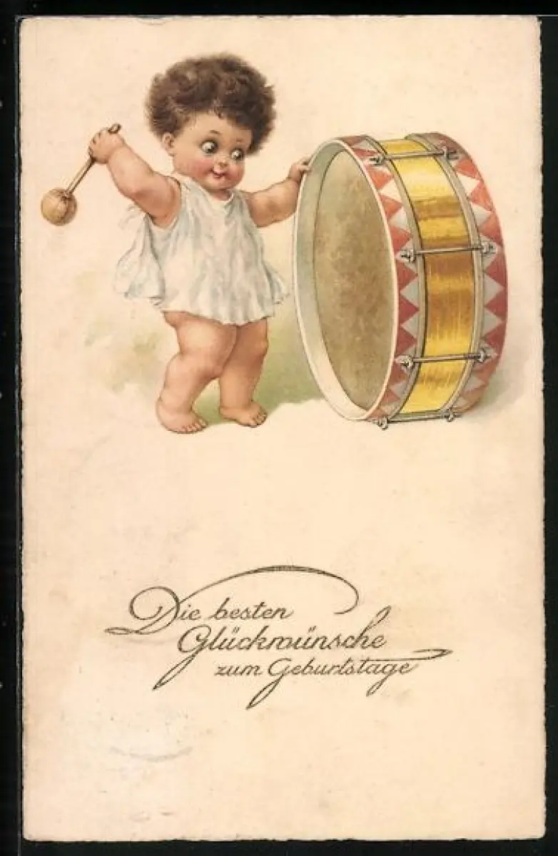 AK kleines Kind schlägt die Trommel, die Besten Glückwünsche zum Geburtstag