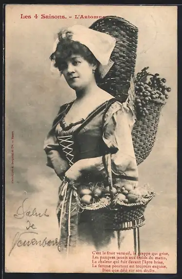 AK les 4 saisons, l`automne, Frau mit Weintrauben
