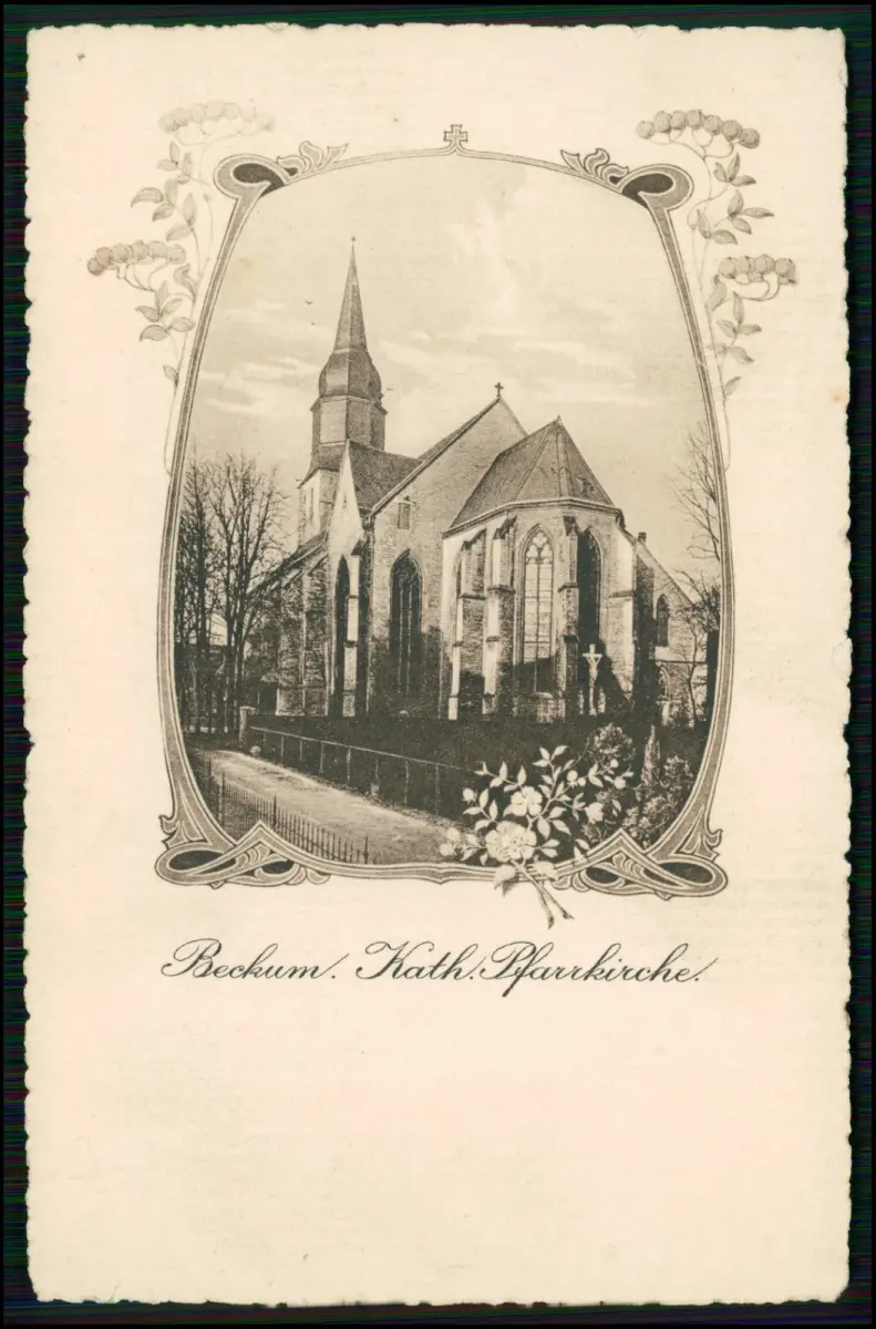 AK mit Blumendekor - katholische Pfarrkirche St. Stephanus - in Beckum Westfalen