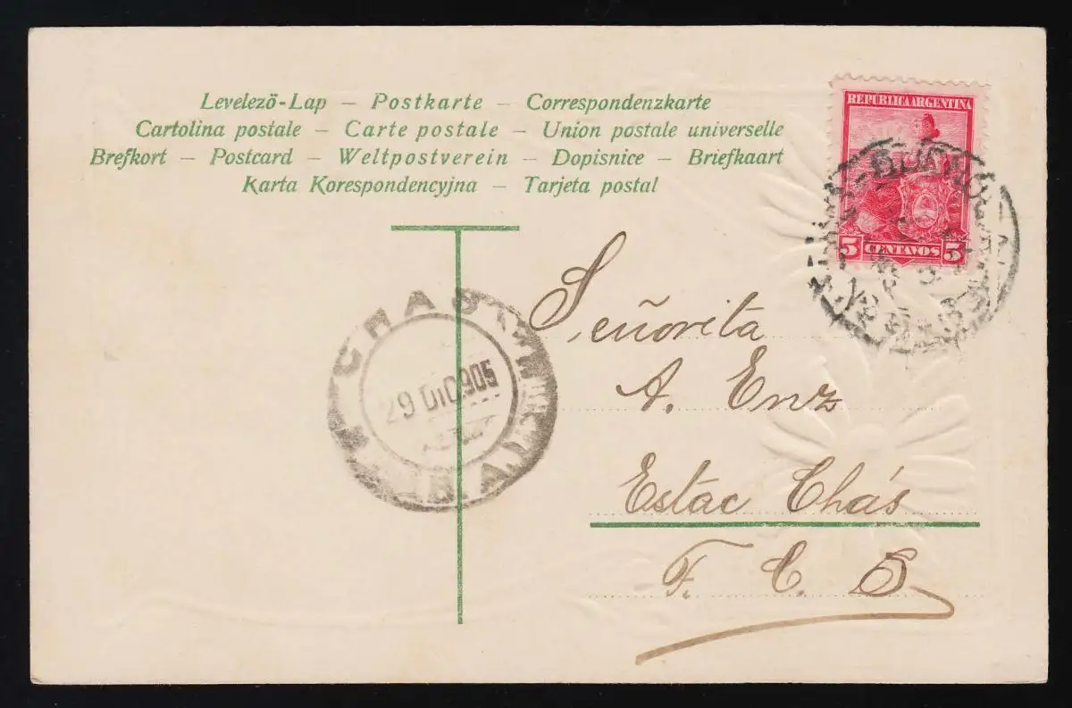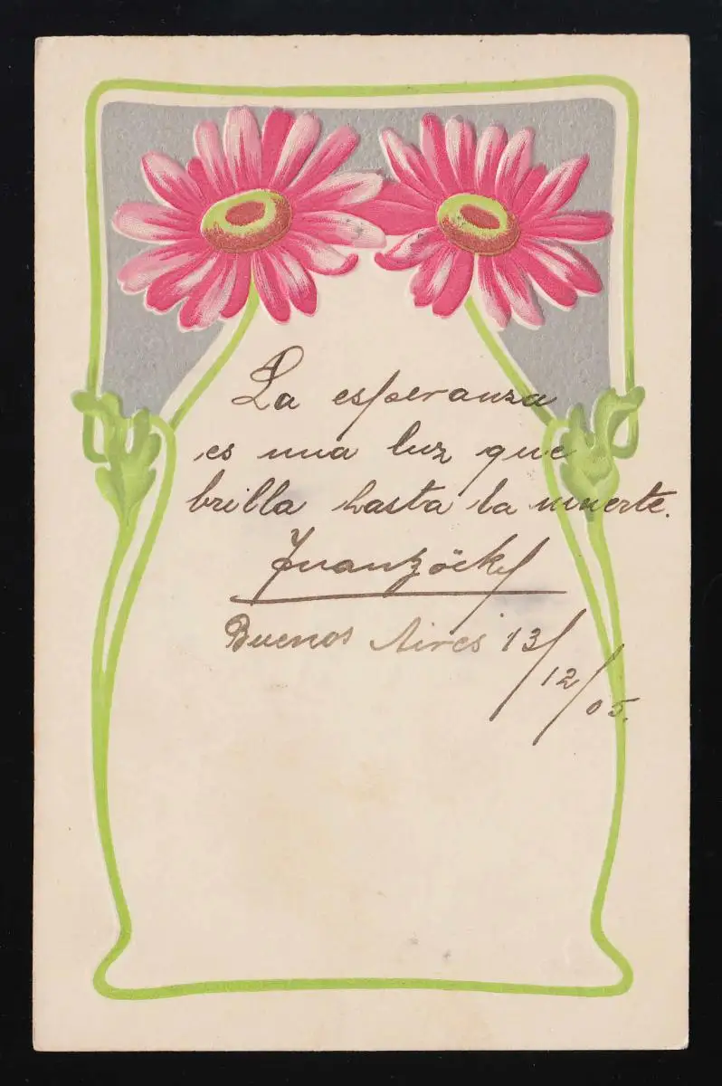 AK rote Margeriten, Stiele Rahmen, Jugendstil Buenos Aires / Chás 13. + 29.12.05