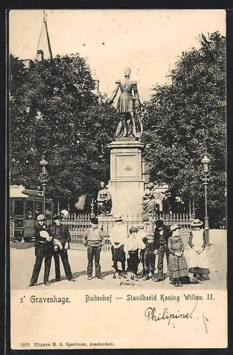 AK s` Gravenhage, Buitenhof, Standbeeld Koning Willem II.