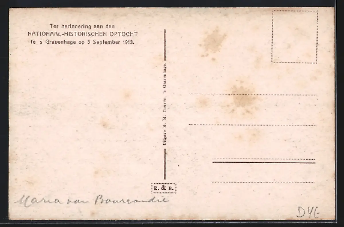 AK `s-Gravenhage, Ter herinnering aan den Nationaal-Historischen Optocht, 5. September 1913