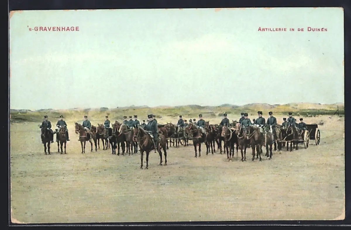 AK `s-Gravenhage, niederländische berittene Artillerie in den Dünen