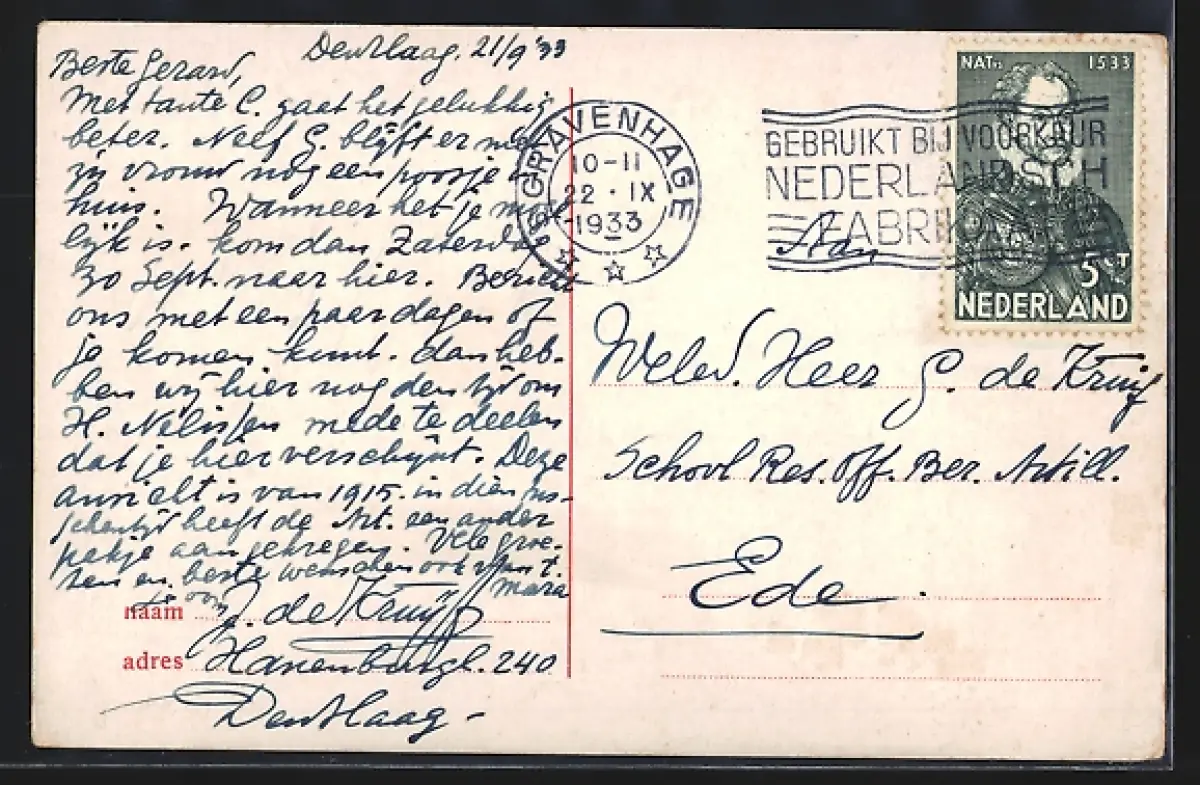 gelaufen 1933, Ecken bestoßen, guter Zustand