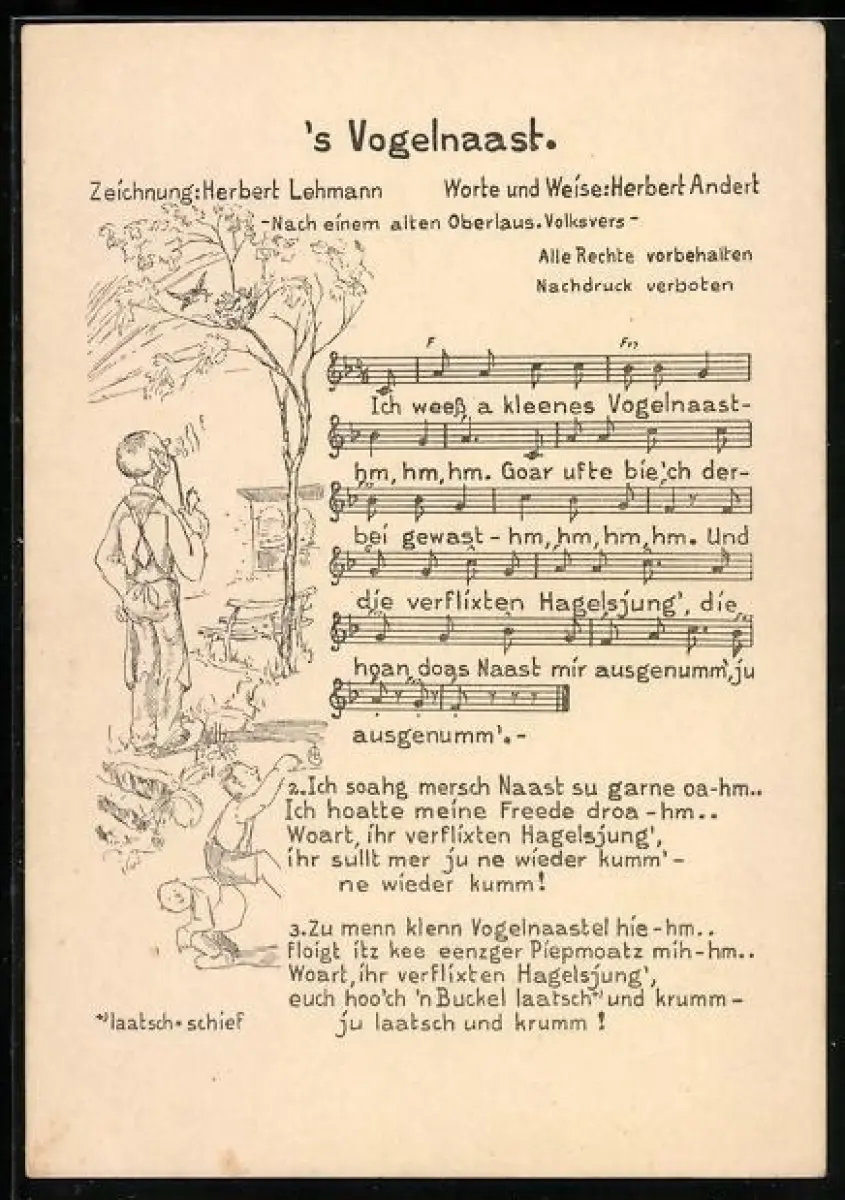 AK `s Vogelnaast, Lied mit Noten u. Text, Vogelbeobachter