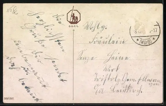 alte Ansichtskarte, gelaufen, Briefmarke entfernt, guter Zustand