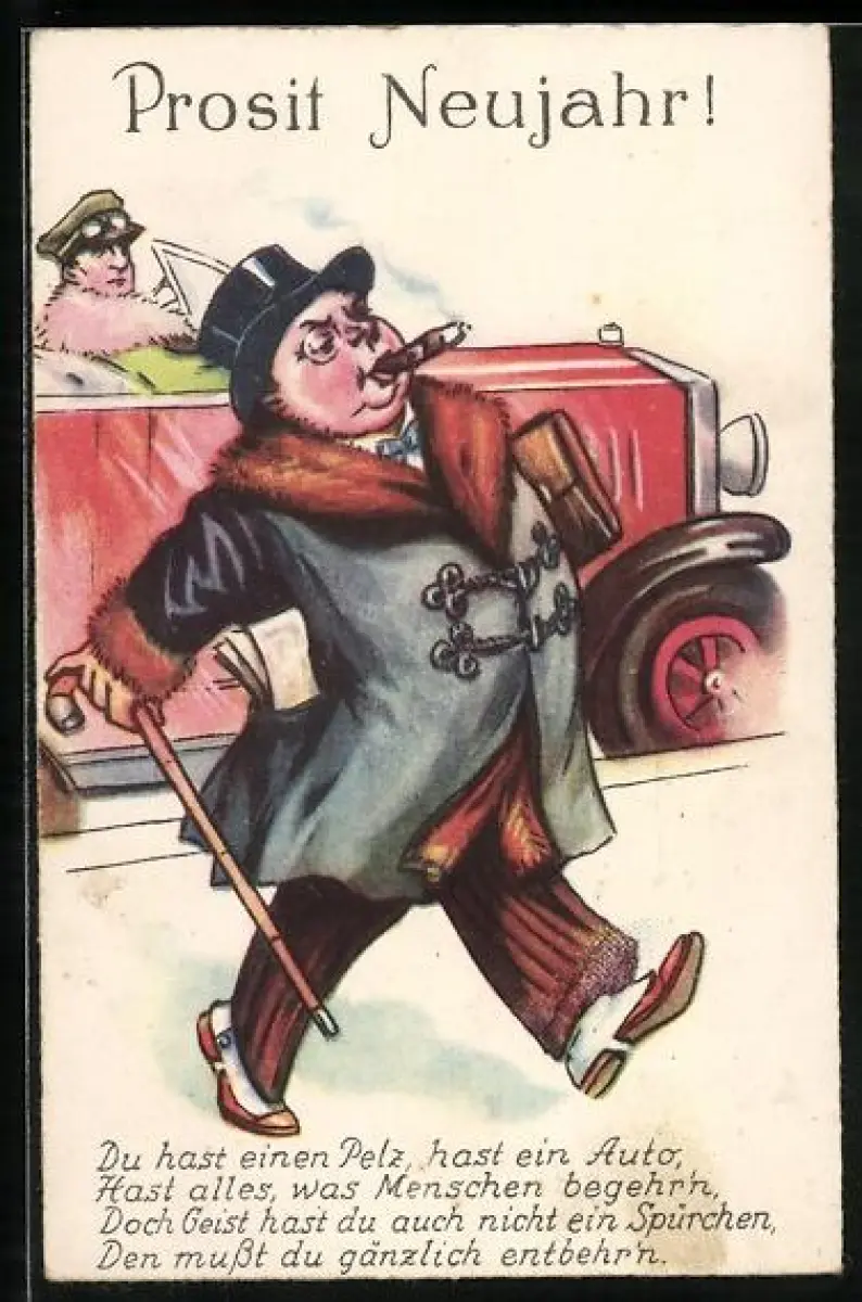 AK wohlhabender Herr fühlt sich wichtig, Auto, Neujahr, Scherz
