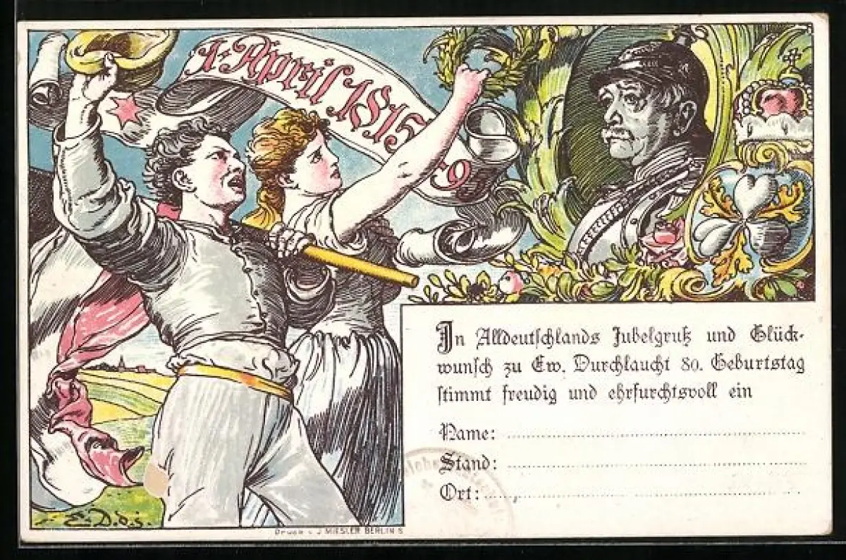 AK zum 80. Geburtstag von Bismarck, Jubelgruss mit Portrait