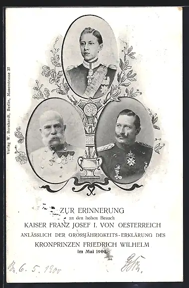 AK zur Erinnerung Kaiser Franz Josef I. von Österreich und Kaiser Wilhelm II. im Mai 1900