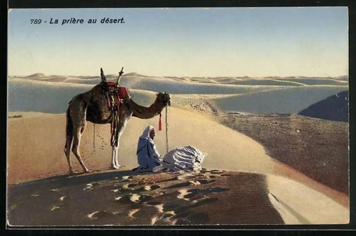 AK zwei Nomaden mit einem Kamel in der Wüste auf einer Düne