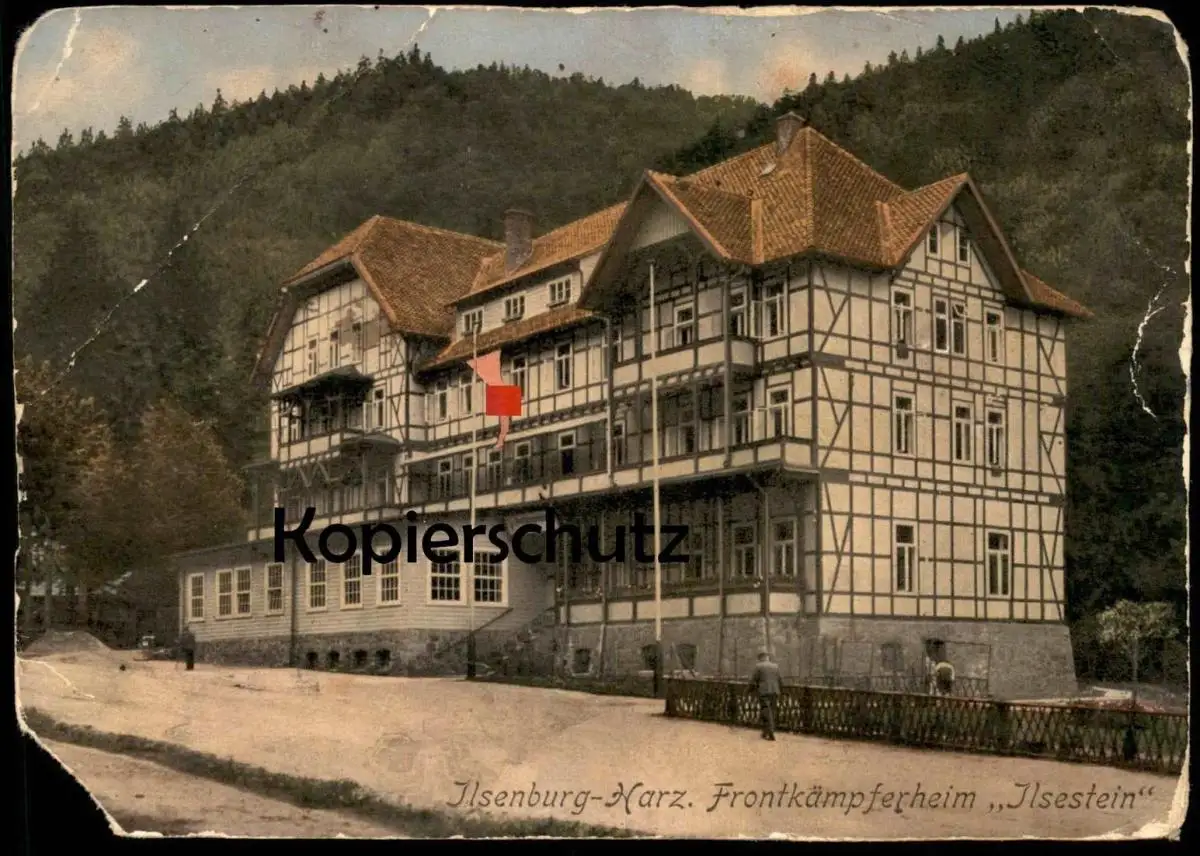 ALTE FOTO KARTE ILSENBURG FRONTKÄMPFERHEIM ILSESTEIN, Format: 16 cm x 11,3 cmErhaltung (s. Scan): schlechter, stärker bestoßen, Knicke; links unten Ecke fehlend, rückseitig teilweise bemalt / 915369 o. R.