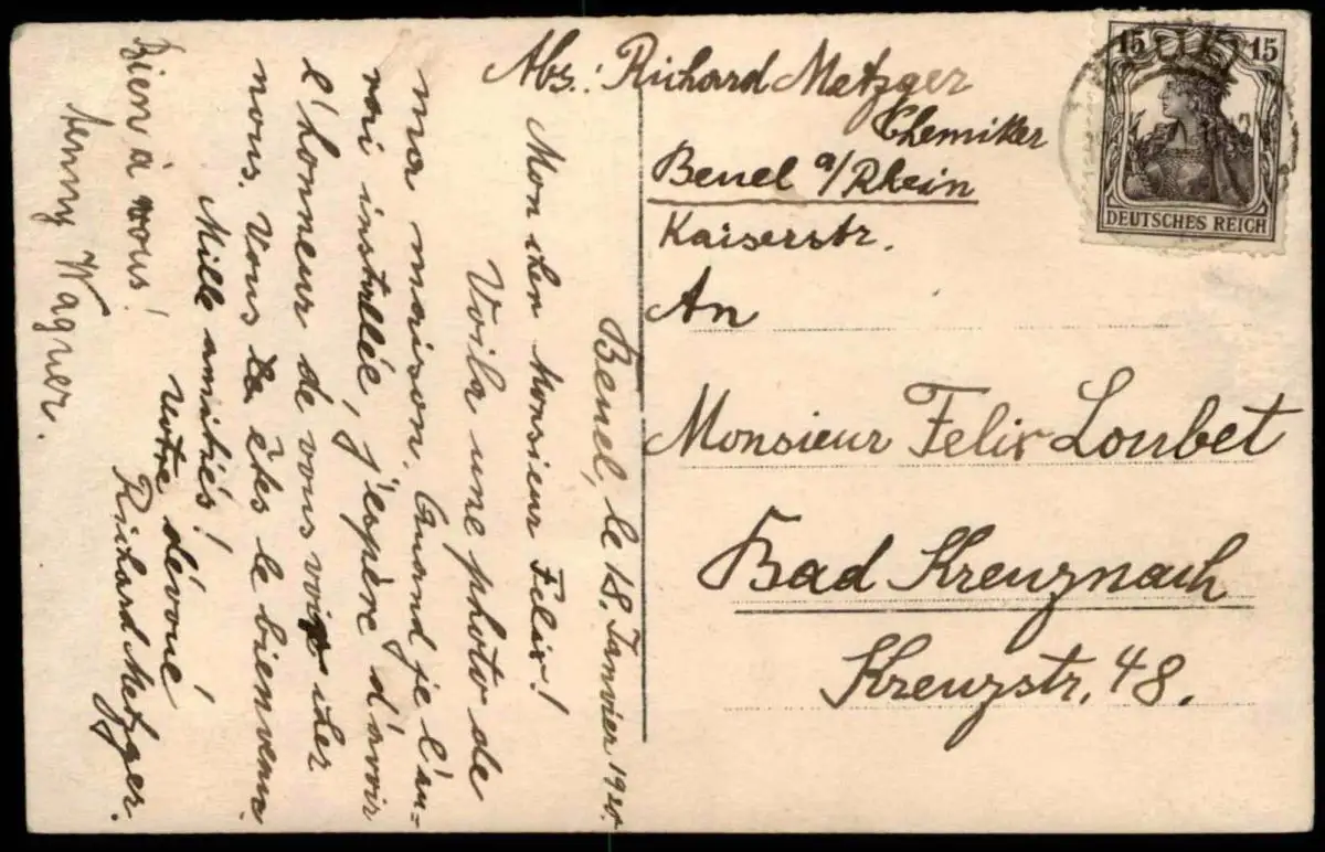 Gelaufen: 18.01.1920 von Richard Metzger verfasst mit Stempel Beuel nach Bad Kreuznach