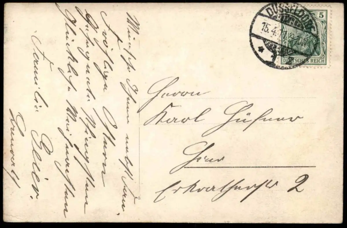 Gelaufen: 15.04.1911 mit Stempel Düsseldorf nach Düsseldorf