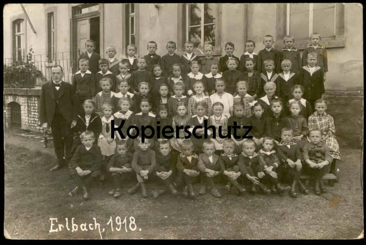 ALTE FOTO POSTKARTE ERLBACH 1918 SCHÜLER SCHULEVerlag: unbekannt