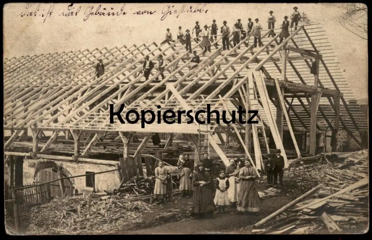 ALTE FOTO POSTKARTE GEBÄUDE IM BAU "DAS IST DAS GEBÄUDE VON GIESSÜBL" HAUZENBERG FÜRSETZING BAYERN DACHDECKER ZIMMERER