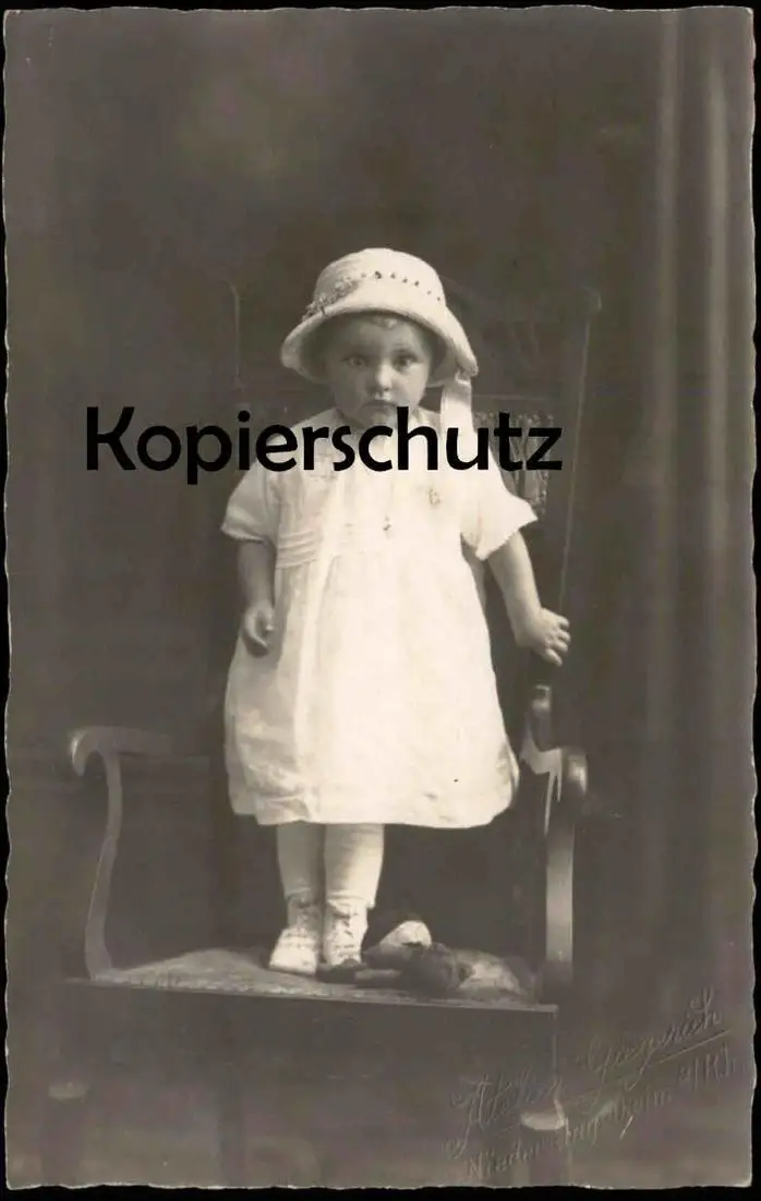 ALTE FOTO POSTKARTE KIND MIT BÄR ATELIER GIEGERICH NIEDER-INGELHEIM child enfant girl Teddybär ours bear Teddy photo cpa
