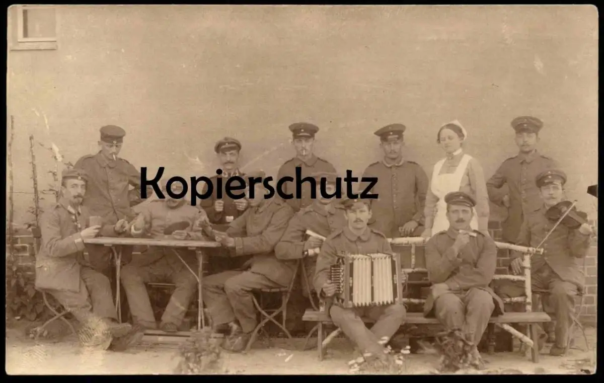 ALTE FOTO POSTKARTE SOLDATEN STRAUSSBERG AKKORDEON KARTEN SPIELEN SKAT ? VIOLINE violon violin AK cpa photo postcard