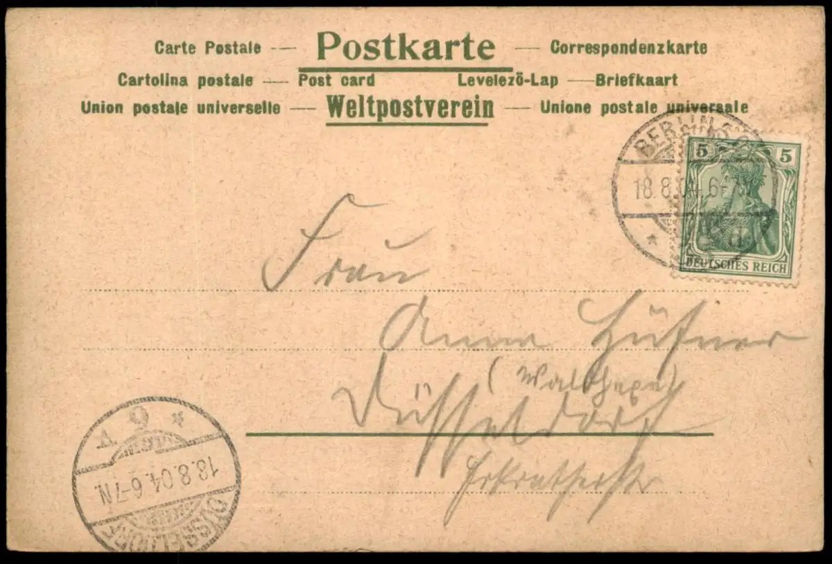 Gelaufen: 18.08.1904 mit Stempel Berlin nach DüsseldorfErhaltung (s. Scan): gut / 915129