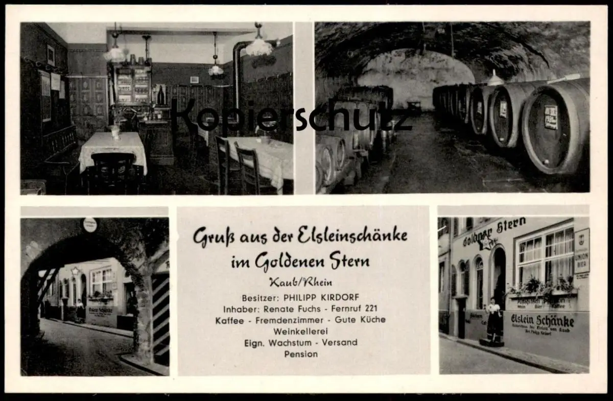 ALTE KARTE KAUB GRUSS AUS DER ELSLEINSCHÄNKE IM GOLDENEN STERN PHILIPP KIRDORF INHABER RENATE FUCHS RECHNUNG PENSION KAFFEE UND FRÜHSTÜCK WEIN BIERVerlag: unbekannt