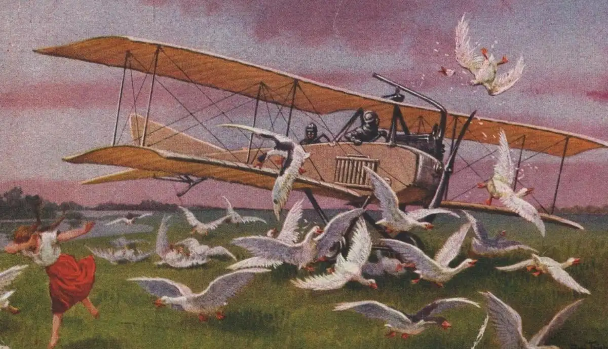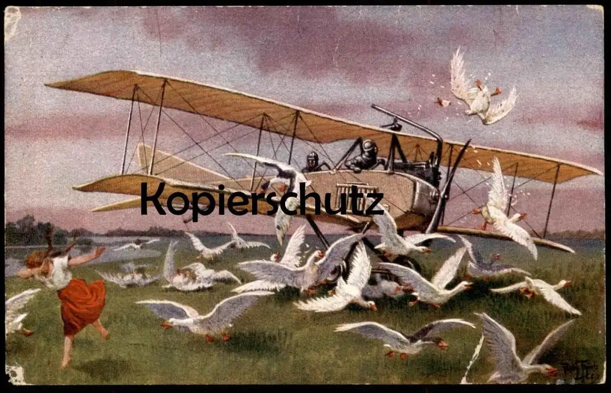 ALTE KÜNSTLER POSTKARTE ARTHUR THIELE FLUGZEUG Luftfahrt Doppeldecker avion airplane Gänse Gans goose AK cpa postcard