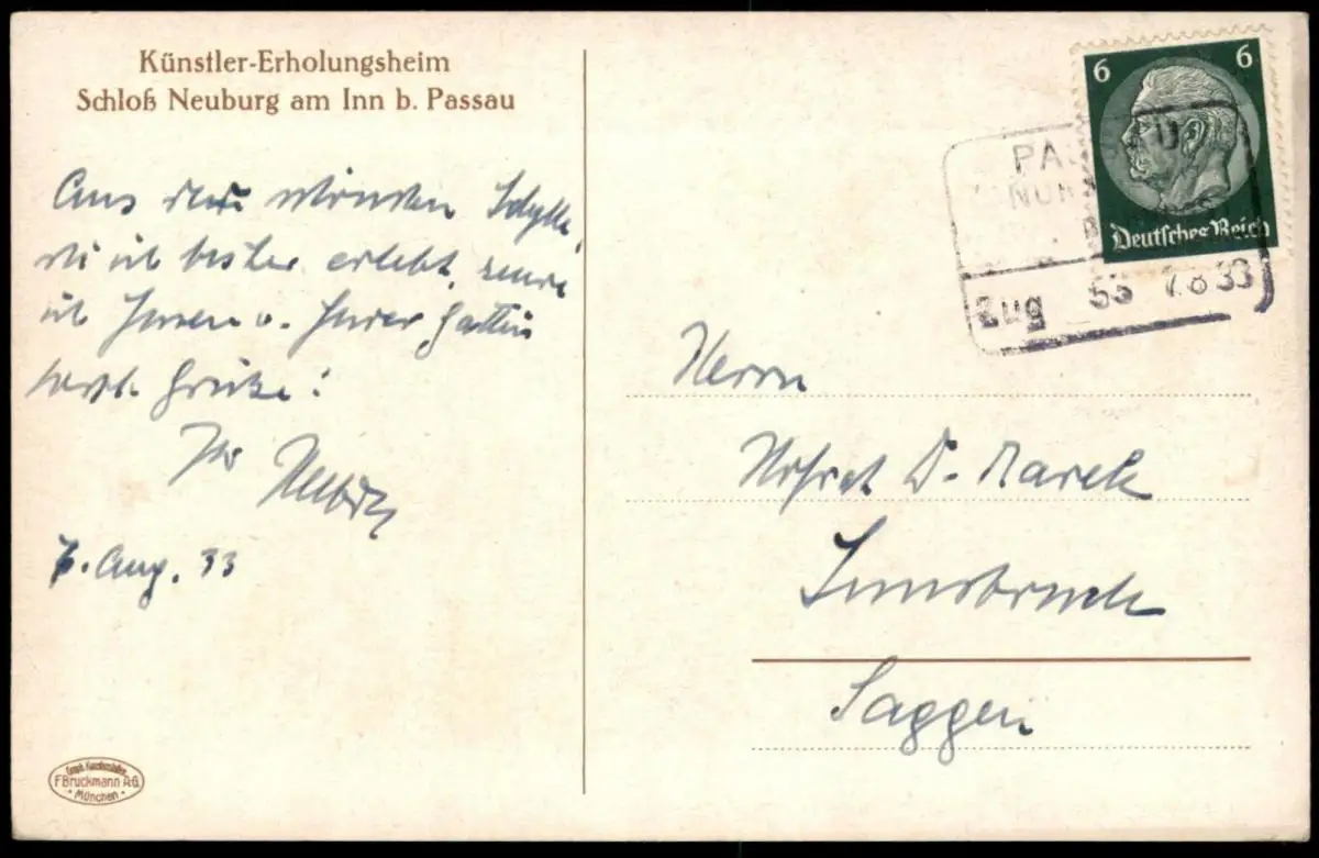 ALTE KÜNSTLER POSTKARTE AUFGANG VON DER TERRASSE IN DEN BURGHOF M. E. BEYRER KÜNSTLER-ERHOLUNGSHEIM SCHLOSS NEUBURG AM INN BEI PASSAUVerlag: Bruckmann, MünchenGelaufen: Bahnpoststempel Passau 07.08.1933 Zug 55 nach InnsbruckErhaltung (s. Scan): gut, rechtsseitig minimal bestoßen / 915093