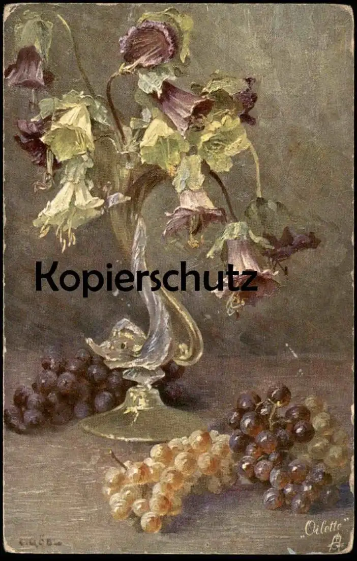 ALTE KÜNSTLER POSTKARTE BLUMEN UND FRÜCHTE C. GÖBL WEINTRAUBEN RAPHAEL TUCK OILETTE Tucks Ansichtskarte AK cpa postcard