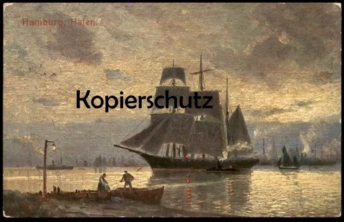 ALTE KÜNSTLER POSTKARTE HAMBURG HAFEN ABEND AUF DER REEDE SEGELSCHIFF Schiff ship Ansichtskarte AK postcard cpa photo