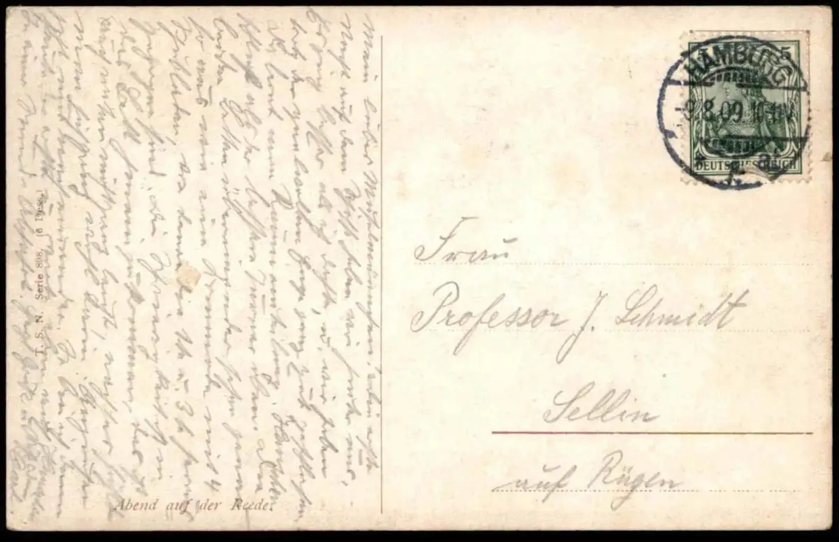 Gelaufen: 09.08.1909 mit Stempel Hamburg nach Sellin