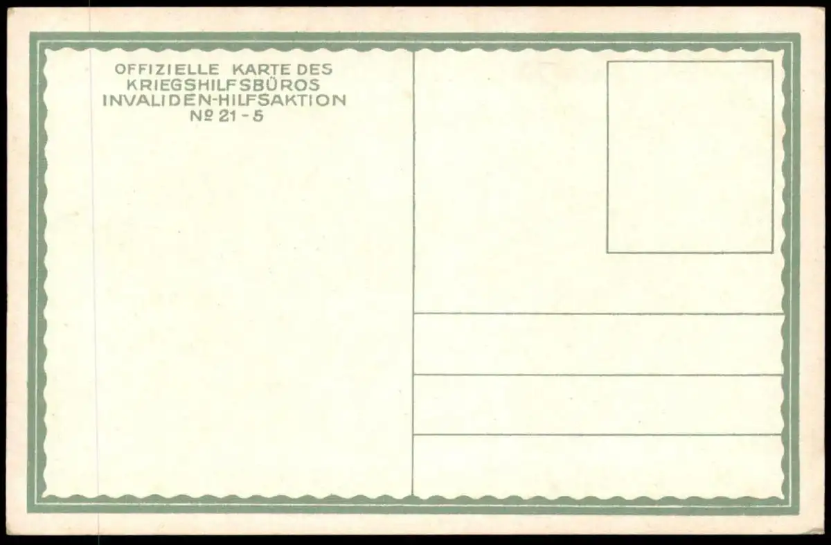 Verlag: Offizielle Karte des Kriegshilfsbüros Invaliden-Hilfaktion No. 21-5Gelaufen: neinErhaltung (s. Scan): sehr gut / 915123